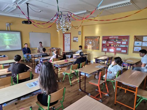 Pályaorientáció keretében 2025. 09. 23-án Király Imre iskolánk igazgatóhelyettese és iskolánk tanulója, Rácz Sándor látogatott el a Rákóczi Ferenc Magyar-Angol Két Tanítási Nyelvű Általános Iskola 8.b osztályos diákjaihoz. Sándor már végzett asztalos, jelenleg szakácsnak tanul. Kötetlen beszélgetés formájában ismertettük meg a képzések szépségeit, lehetőségeit a pályaválasztás előtt álló diákokkal.